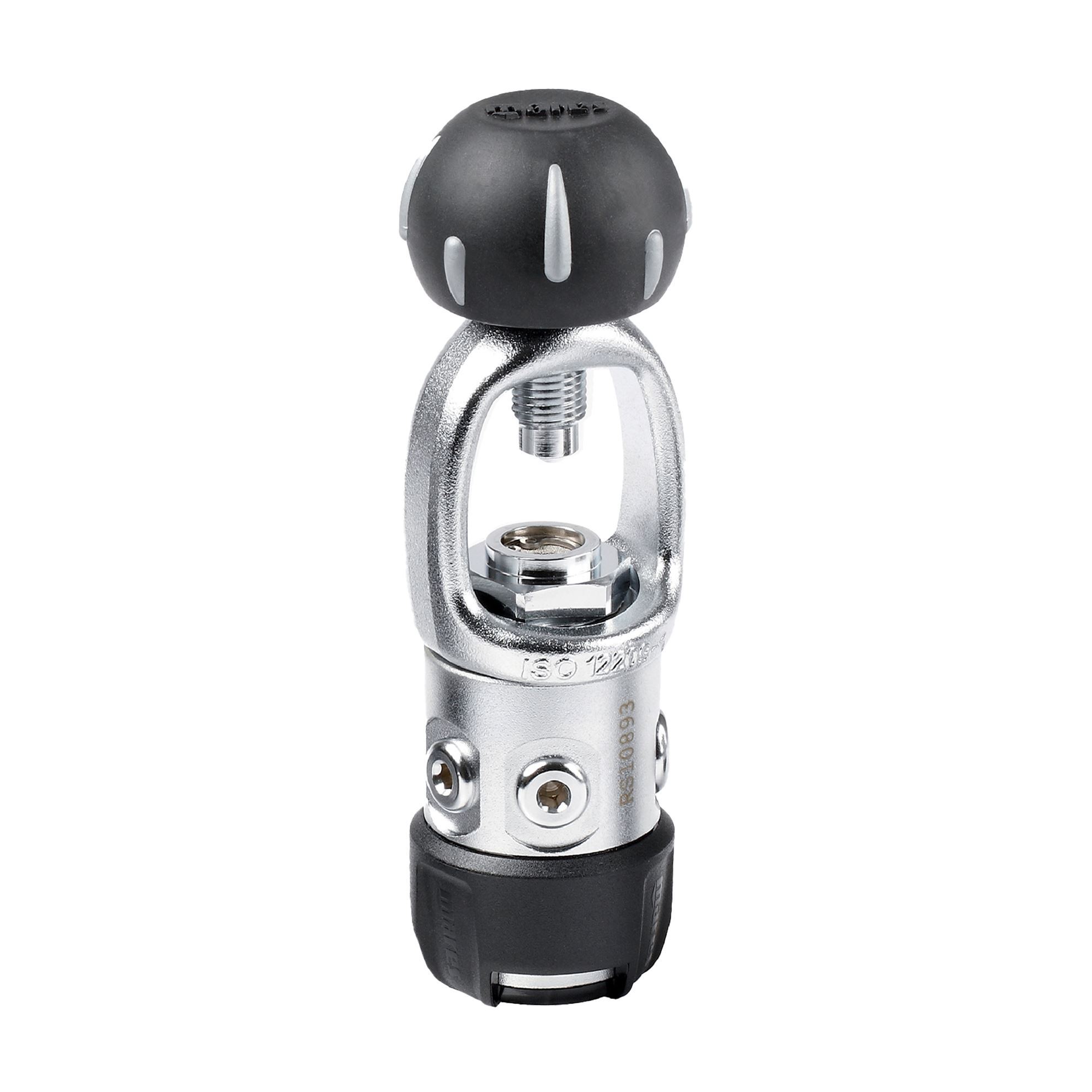 Our diving regulator's first stage sets the standard for reliability in a lightweight, robust and compact design. Ideal for divers who prioritize performance, this first stage boasts a 300 bar black and grey DIN connection with a hexagonal shape, ensuring a secure grip, even in challenging conditions. Perfect for heavy use, the sandblasted finish enhances scratch resistance, maintaining both form and function. The piston control and dedicated RFID chip holder are testament to the meticulous engineering that goes into each detail. Choose between the 200 bar INT connection or the robust 300/200 bar DIN connection for a personalized diving experience.